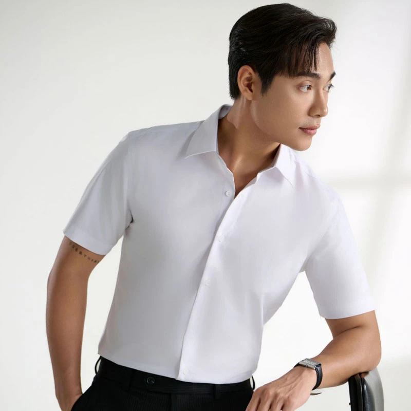 Áo sơ mi cộc tay trắng cao cấp, chống nhăn, bền màu