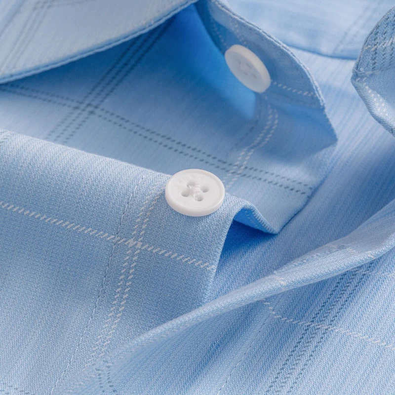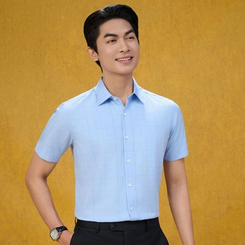 Áo sơ mi cộc tay xanh phối caro, chống nhăn nhàu, chống bám bẩn